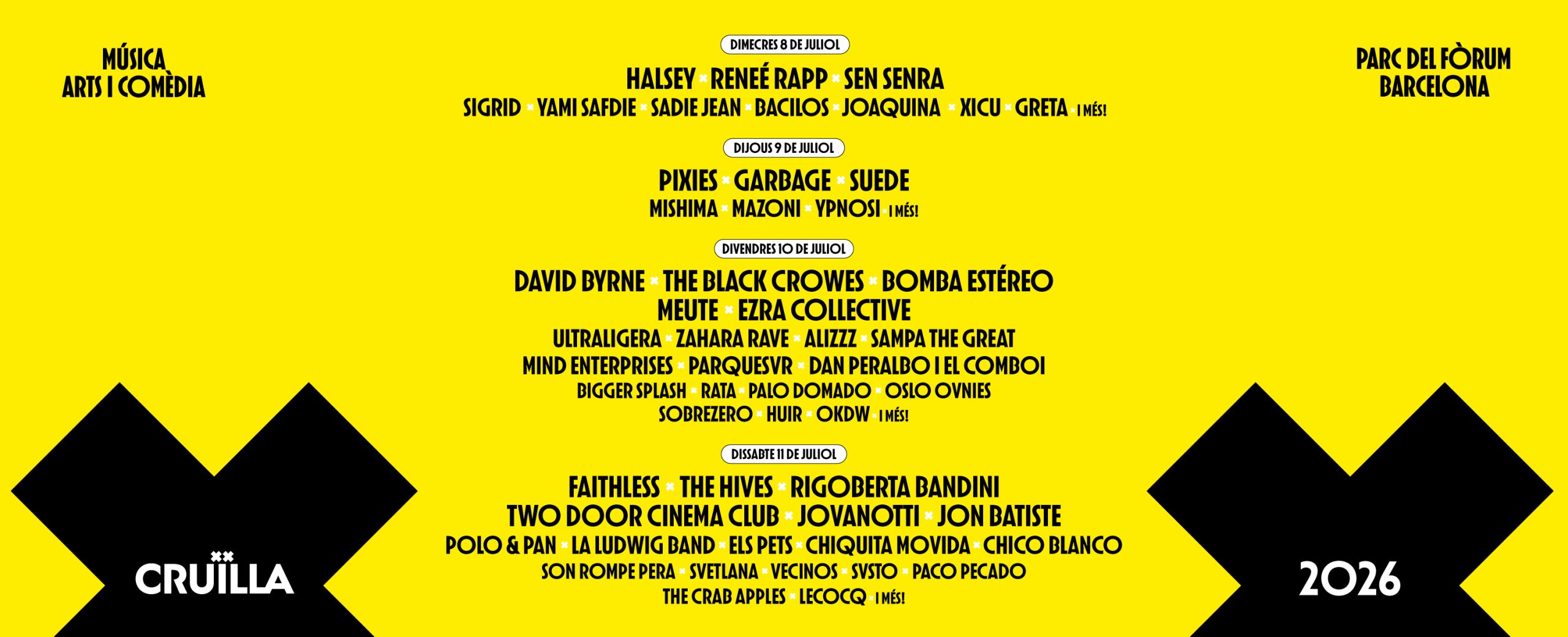Artistes confirmats del Festival Cruïlla 2026!