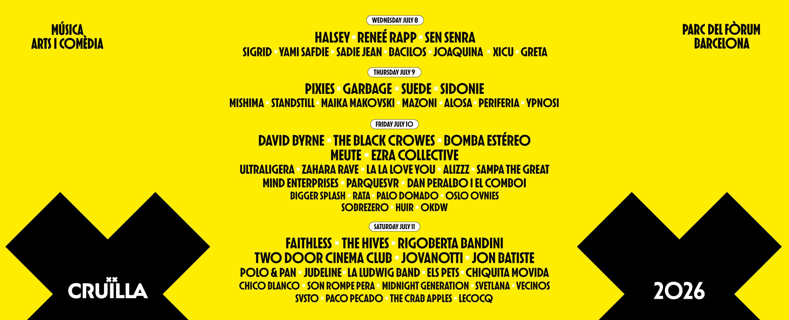 Festival Cruïlla 2026 will take place on July 8, 9, 10, and 11, 2026, at Parc del Fòrum in Barcelona. An iconic city and a stunning setting: open-air and by the sea where you’ll enjoy a one-of-a-kind experience based on music, enriched with art, comedy, and much more!