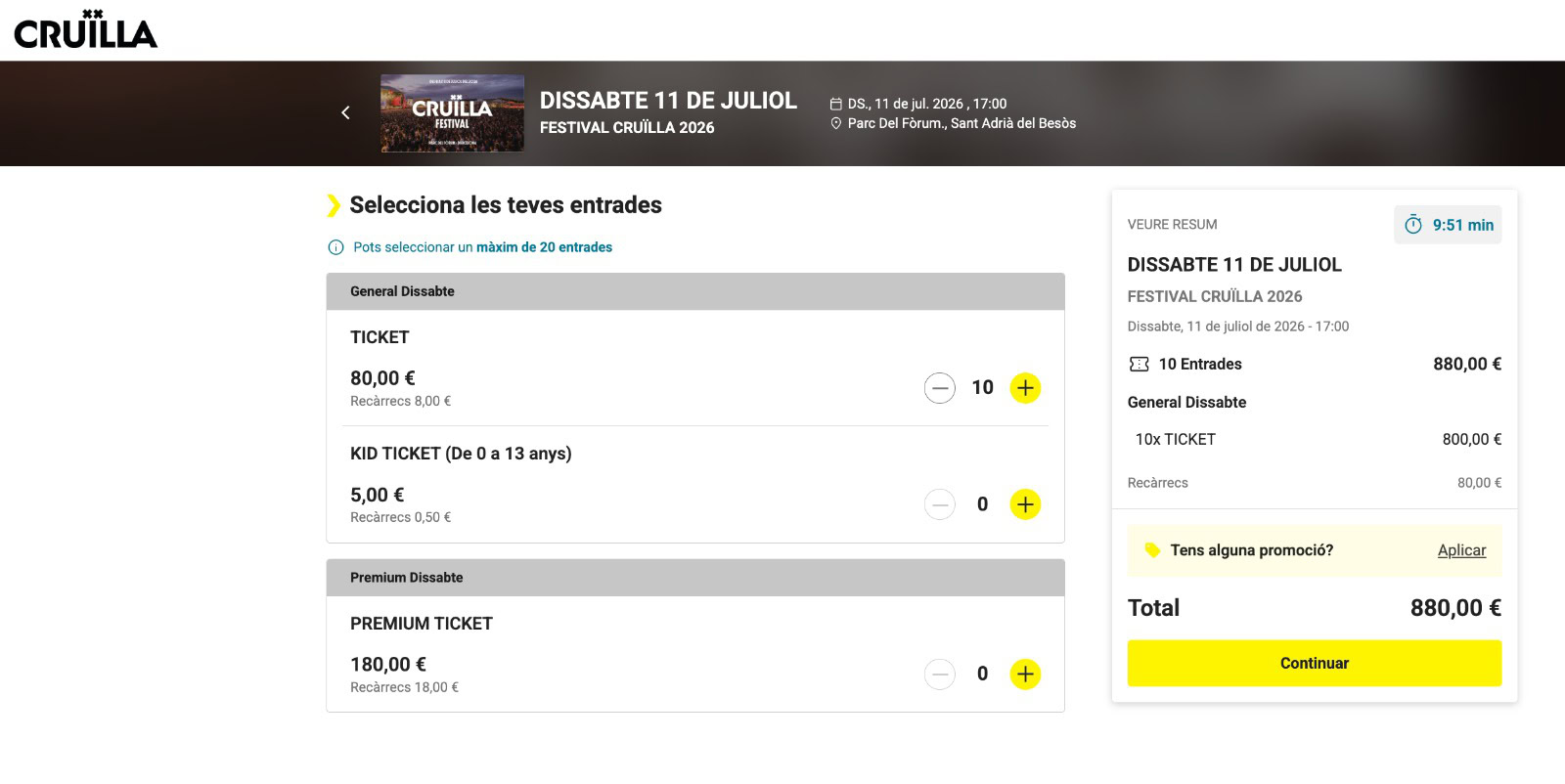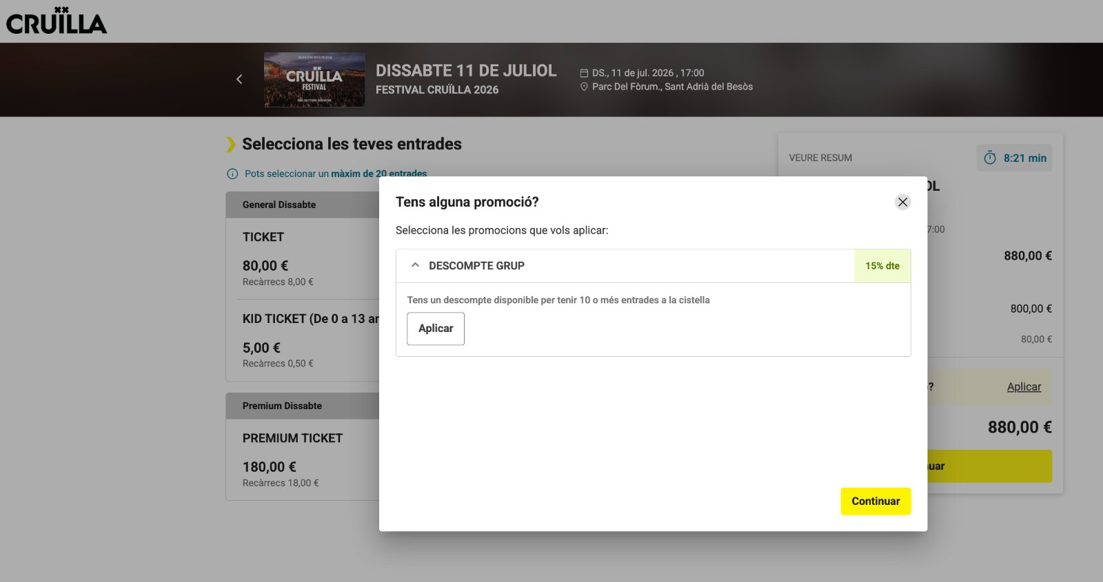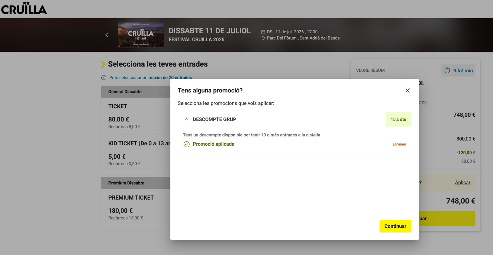 5. Once you are sure that this is the case and that the discount has been applied, simply complete the purchase and you will have your tickets or season tickets to come and enjoy the Cruïlla Festival with your group!